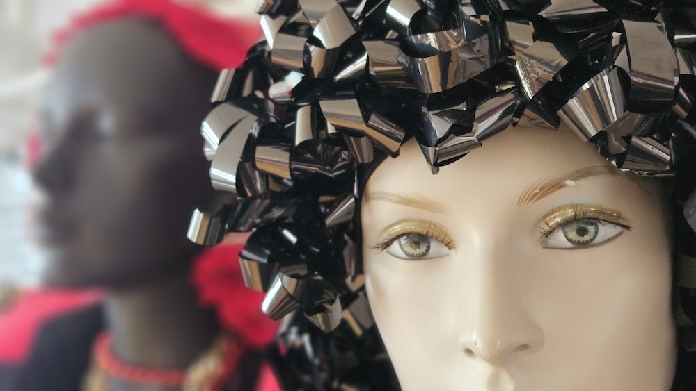 Des mannequins vitrines habillés de créations textiles évocatrices deviennent supports de poésie sonore. En s’approchant de l’œuvres, le public découvre des confidences profondément poétique